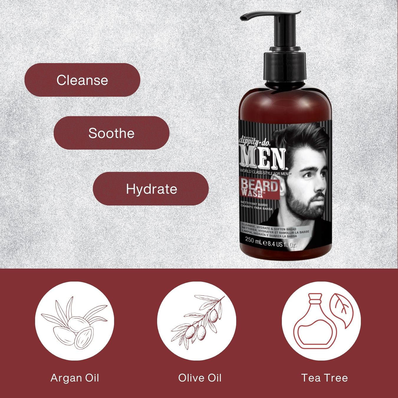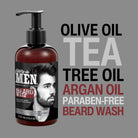 Beard & face wash. Specially formulated to keep skin & facial hair fresh, soft, and well-conditioned without irritation. Enriched with natural ingredients including Argan Oil, Tea Tree Oil and Olive Oil to help encourage healthy beard growth by removing impurities. Best for stubble, scruff, or any length beard.